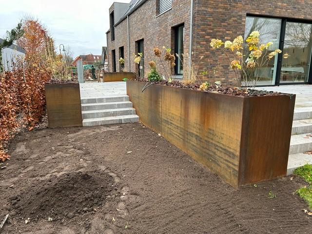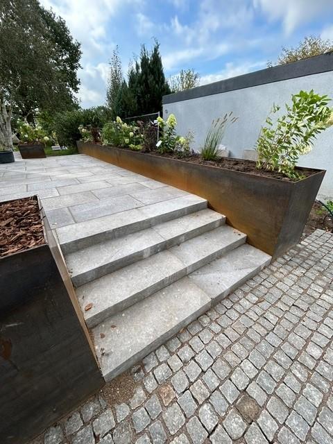Stabmattenzäune und -tore, Elemente aus Cortenstahl oder mit Naturstein gefüllte Gabionen sind eine kleine Auswahl der im Außenbereich verwendeten Metallelemente.